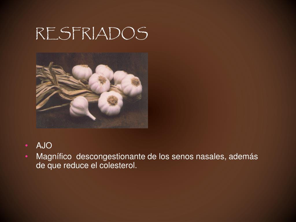 RESFRIADOS • AJO • Magnífico descongestionante de los senos nasales, además de que reduce el colesterol.