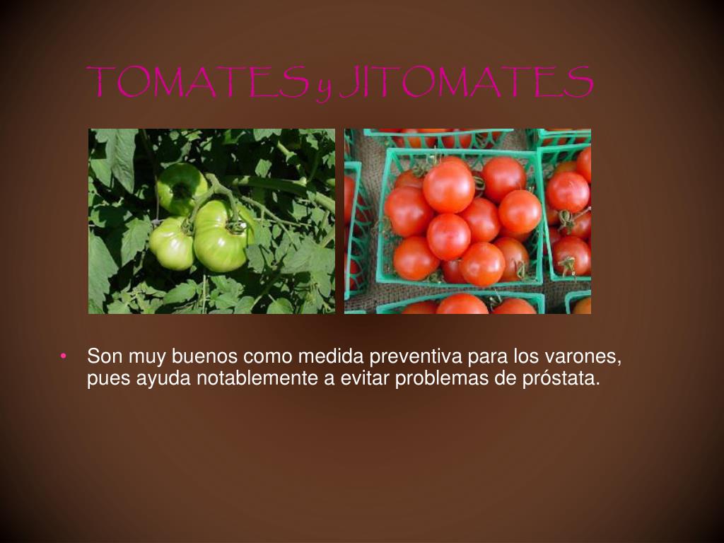 TOMATES y JITOMATES • Son muy buenos como medida preventiva para los varones, pues ayuda notablemente a evitar problemas de próstata.