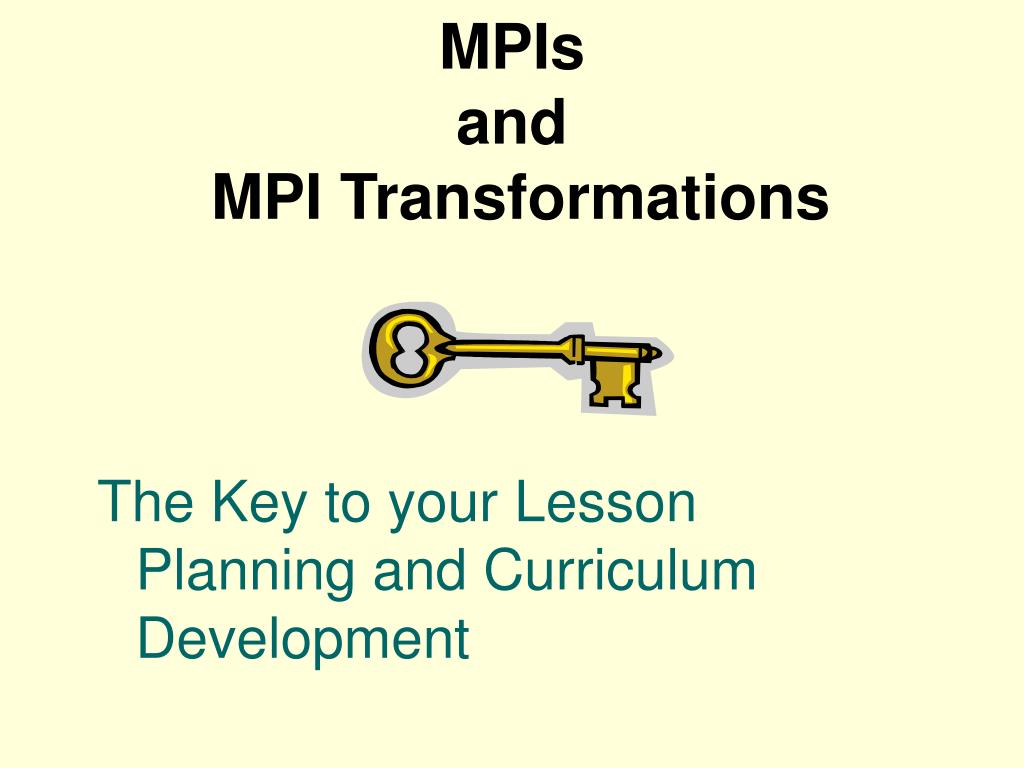 MPIsand MPI Transformations The Key to your Lesson Planning and Curriculum Development