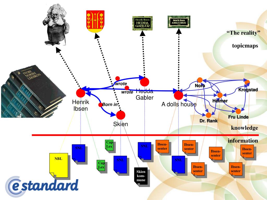 wrote A dolls house Born in CapLex Ibsen-senter Ibsen-senter SNL SNL Ibsen-senter Ibsen-senter SNL SNL CapLex Ibsen-senter Ibsen-senter “The reality” topicmaps wrote Nora andre emnekartflettes inn ... Krogstad Hedda Gabler Helmer Henrik Ibsen Fru Linde Dr. Rank Skien knowledge information NBL Skienkom-mune