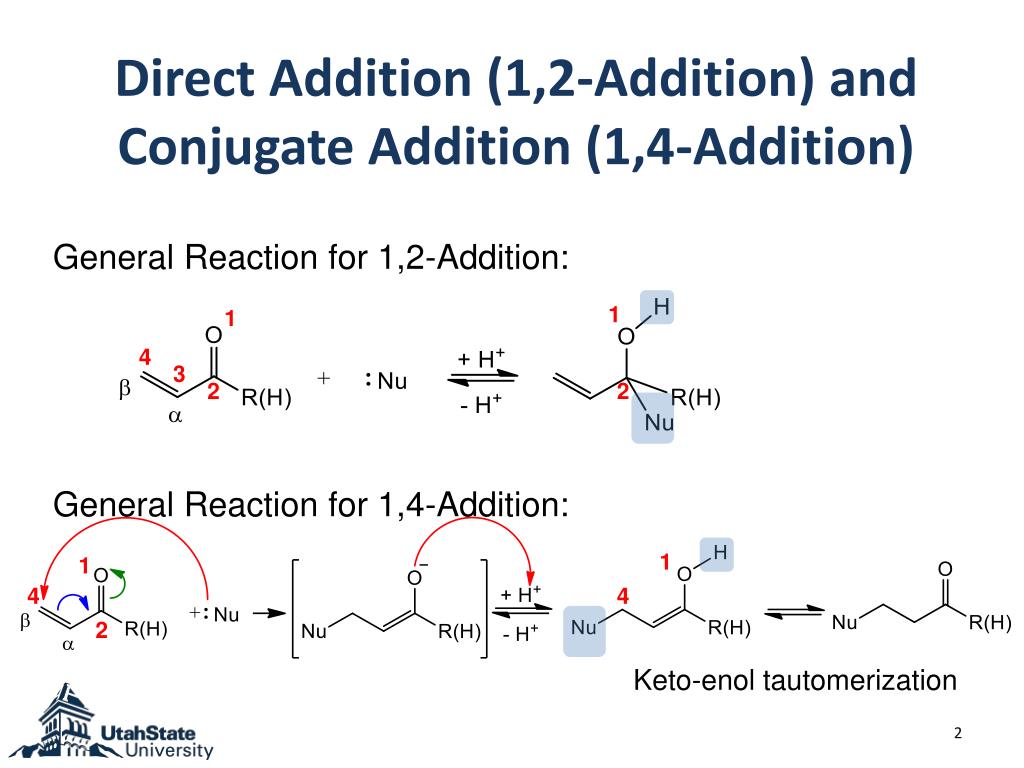 General Reaction for 1,2-Addition: Direct Addition (1,2-Addition) and Conjugate Addition (1,4-Addition) 1 1 4 3 2 2 General Reaction for 1,4-Addition: 1 1 4 4 2 Keto-enoltautomerization