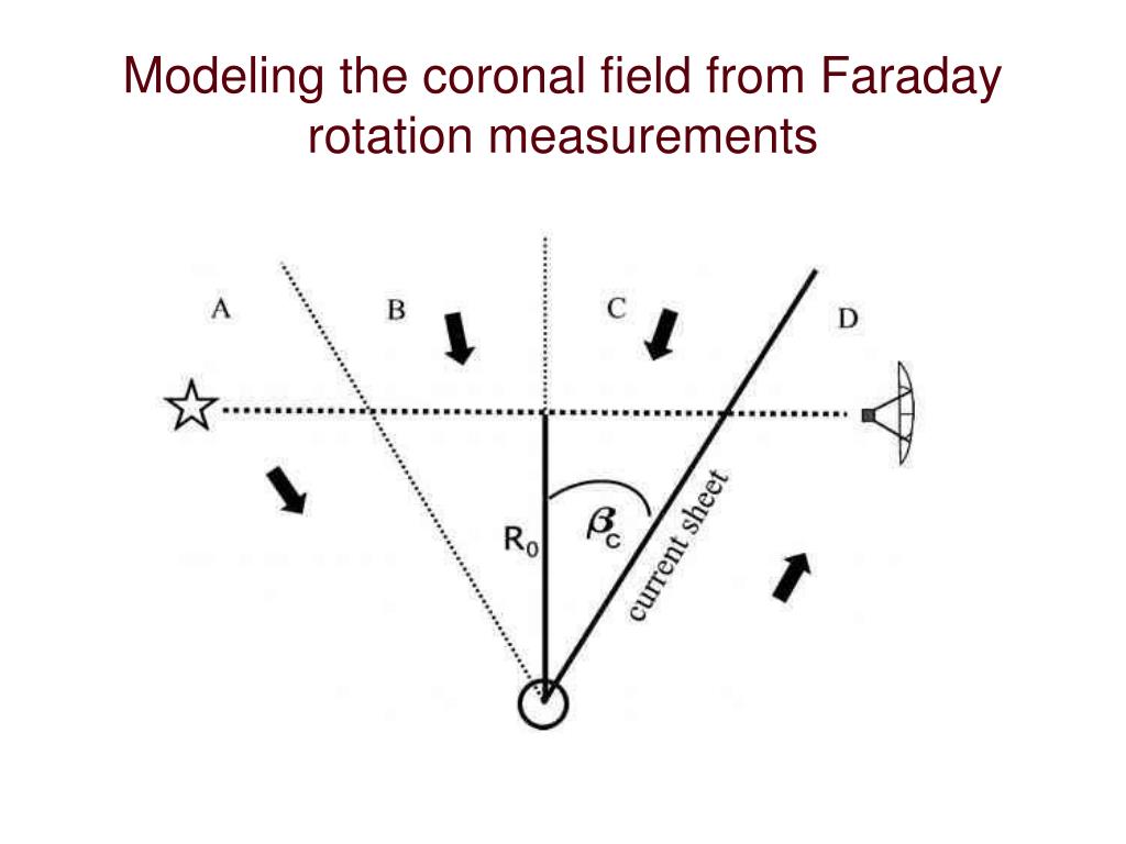 Use of independent information on coronal density and location of the neutral line These measurements of magnetic field and density at ~ 3R can be used to estimate B and n at greater distances probed by Faraday Rotation