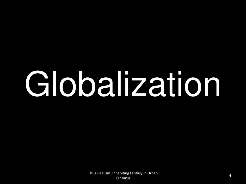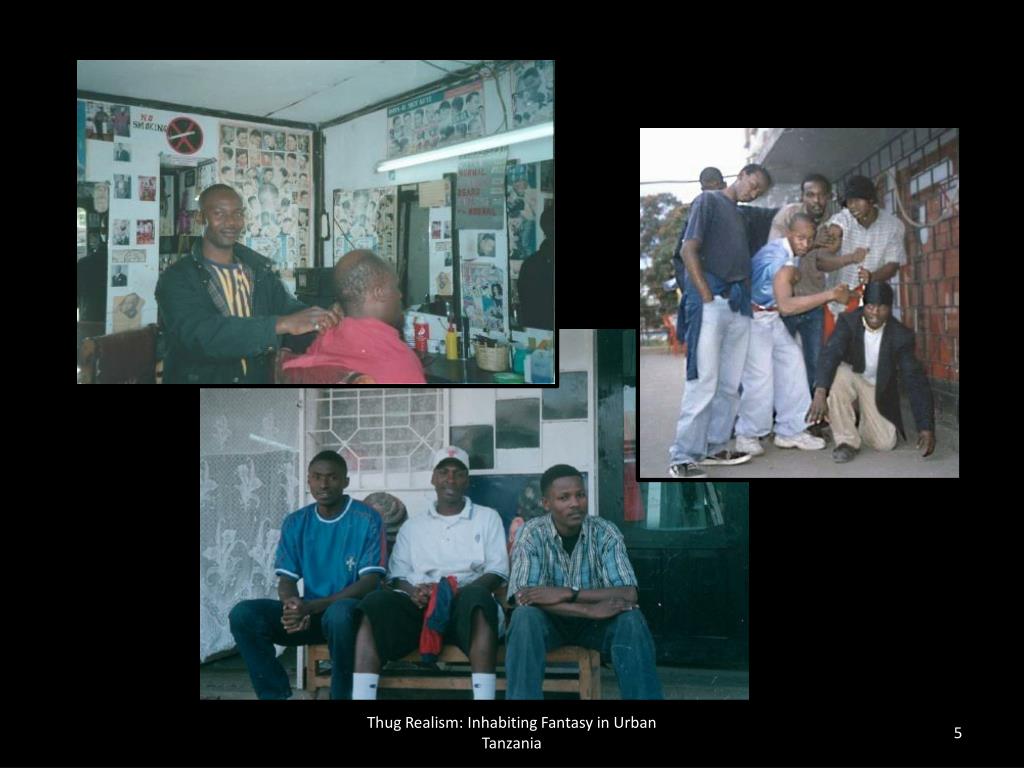 Thug Realism: Inhabiting Fantasy in Urban Tanzania. Presented by: Lindsay Poirier. Globalization. Locality. Brad Weiss. Aim and Methods. Weiss interacts with young men in barbershops. The Road to Fantasy. Explosion of mass media exposed Tanzanians to the outside world.