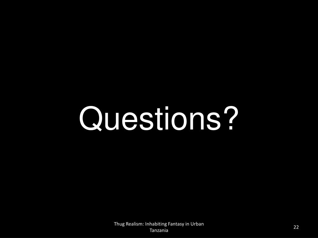 Questions? Thug Realism: Inhabiting Fantasy in Urban Tanzania