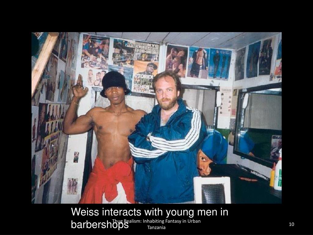 Weiss interacts with young men in barbershops Thug Realism: Inhabiting Fantasy in Urban Tanzania