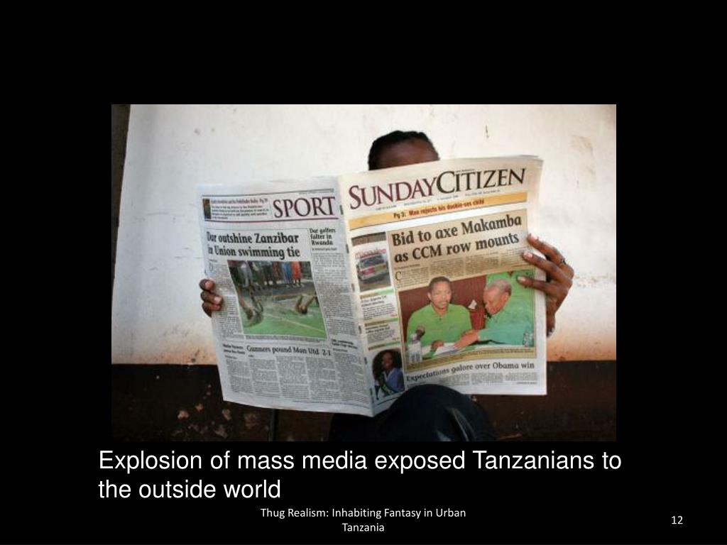 Explosion of mass media exposed Tanzanians to the outside world Thug Realism: Inhabiting Fantasy in Urban Tanzania