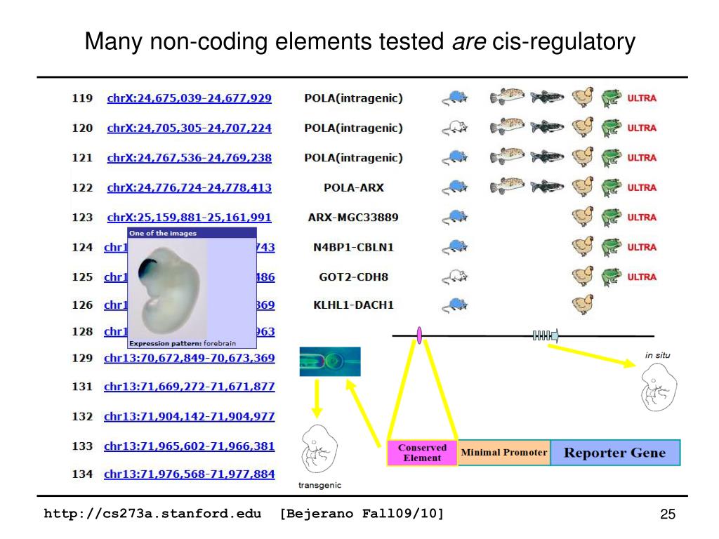 Many non-coding elements tested are cis-regulatory http://cs273a.stanford.edu [Bejerano Fall09/10]