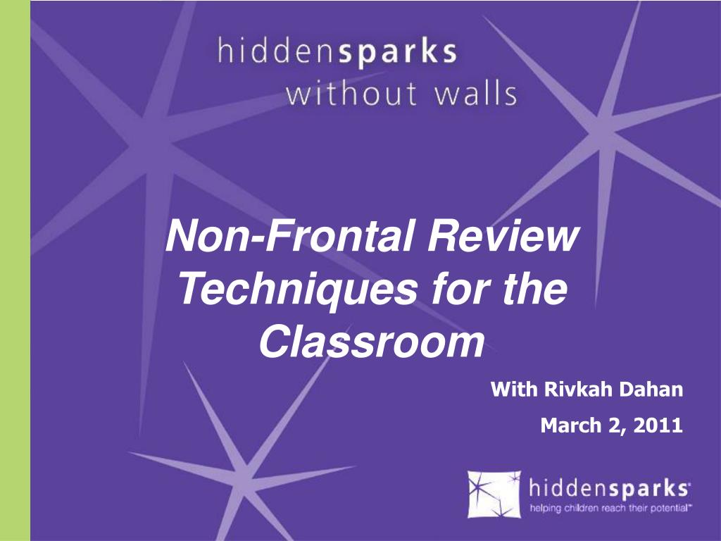 Non-Frontal Review Techniques for the Classroom With Rivkah Dahan March 2, 2011