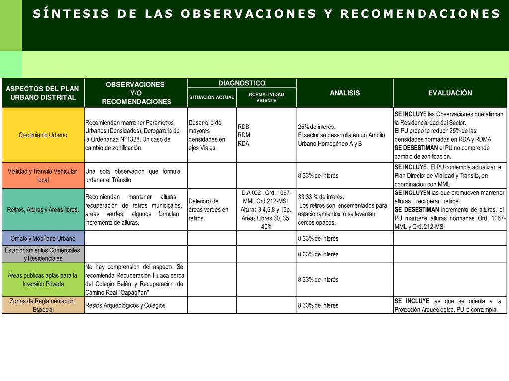 MUNICIPALIDAD DE SAN ISIDRO Plan Urbano Distrital 2012 - 2022 Observaciones y Recomendaciones Formuladas