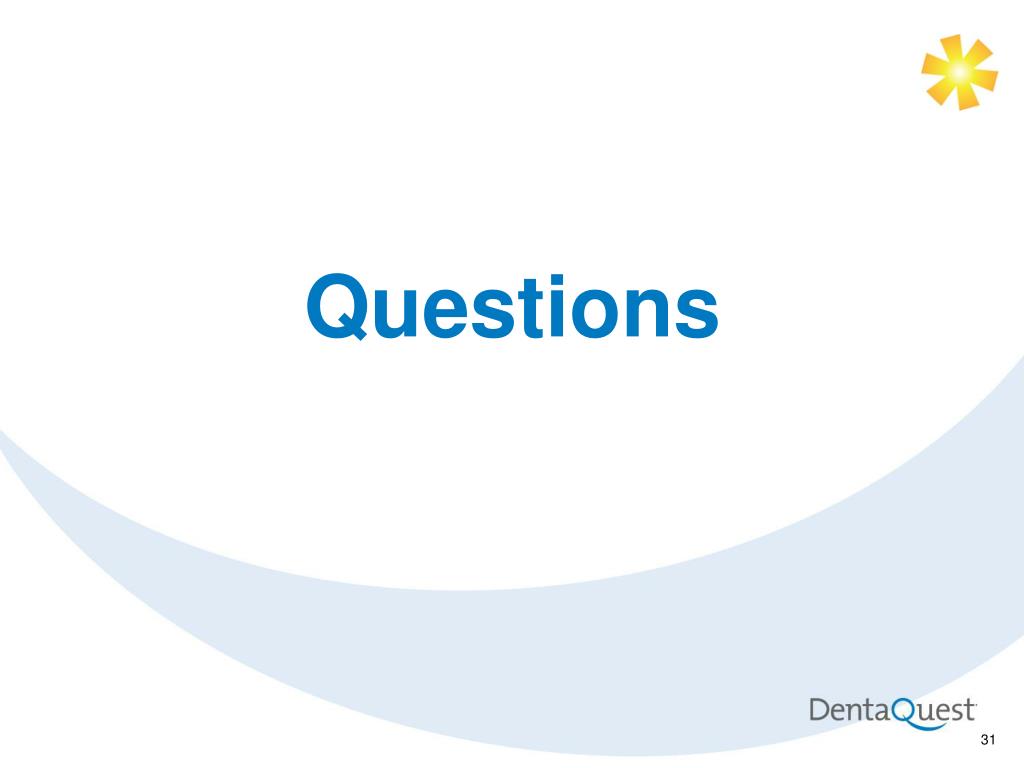 STAR + PLUS Value Added Services • STAR+PLUS Eligible population: • Medicaid Only (non-dual eligible) > 21 years • Benefit Limit: • $250 maximum per calendar year • Covered Value Added Services • Evaluation: D0120, D0140, D0150, D0170 • X-Rays: D0220, D0230, D0270, D0272, D0274, D0330 • Cleanings: D1110, D1204, D1206 *Non-covered services are the member’s responsibility