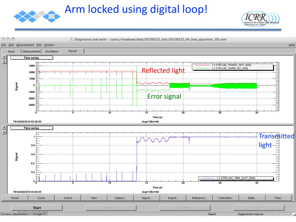 Arm locked using digital loop! Reflected light Error signal Transmitted light 5/17/2010 GWADW at Kyoto Osamu Miyakawa END