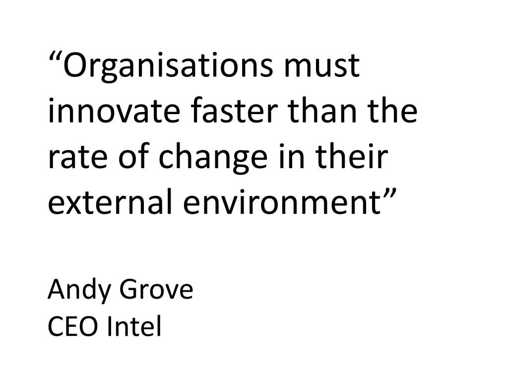 “Organisations must innovate faster than the rate of change in their external environment” Andy Grove CEO Intel
