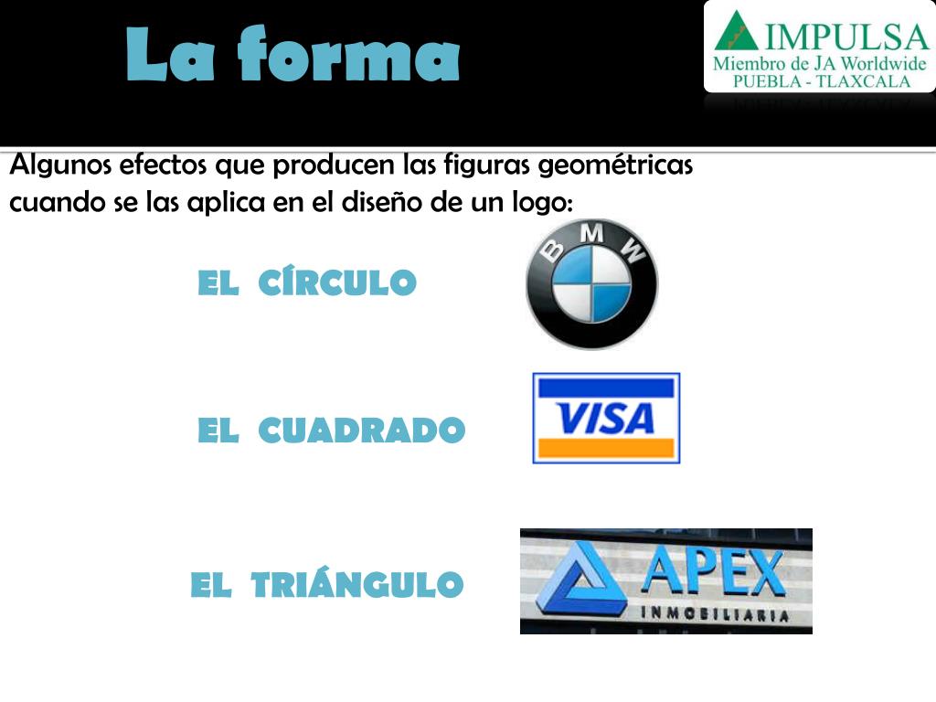 La forma Algunos efectos que producen las figuras geométricas cuando se las aplica en el diseño de un logo: EL CÍRCULO EL CUADRADO EL TRIÁNGULO