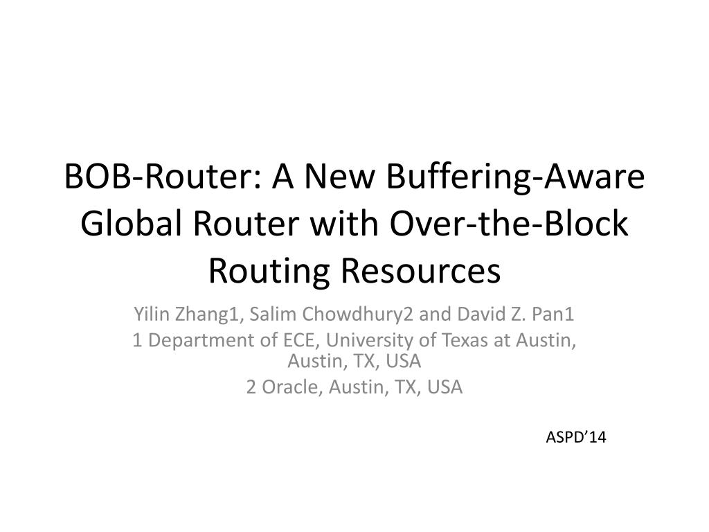 BOB-Router: A New Buffering-Aware Global Router with Over-the-Block Routing Resources Yilin Zhang1, Salim Chowdhury2 and David Z. Pan1 1 Department of ECE, University of Texas at Austin, Austin, TX, USA 2 Oracle, Austin, TX, USA ASPD’14