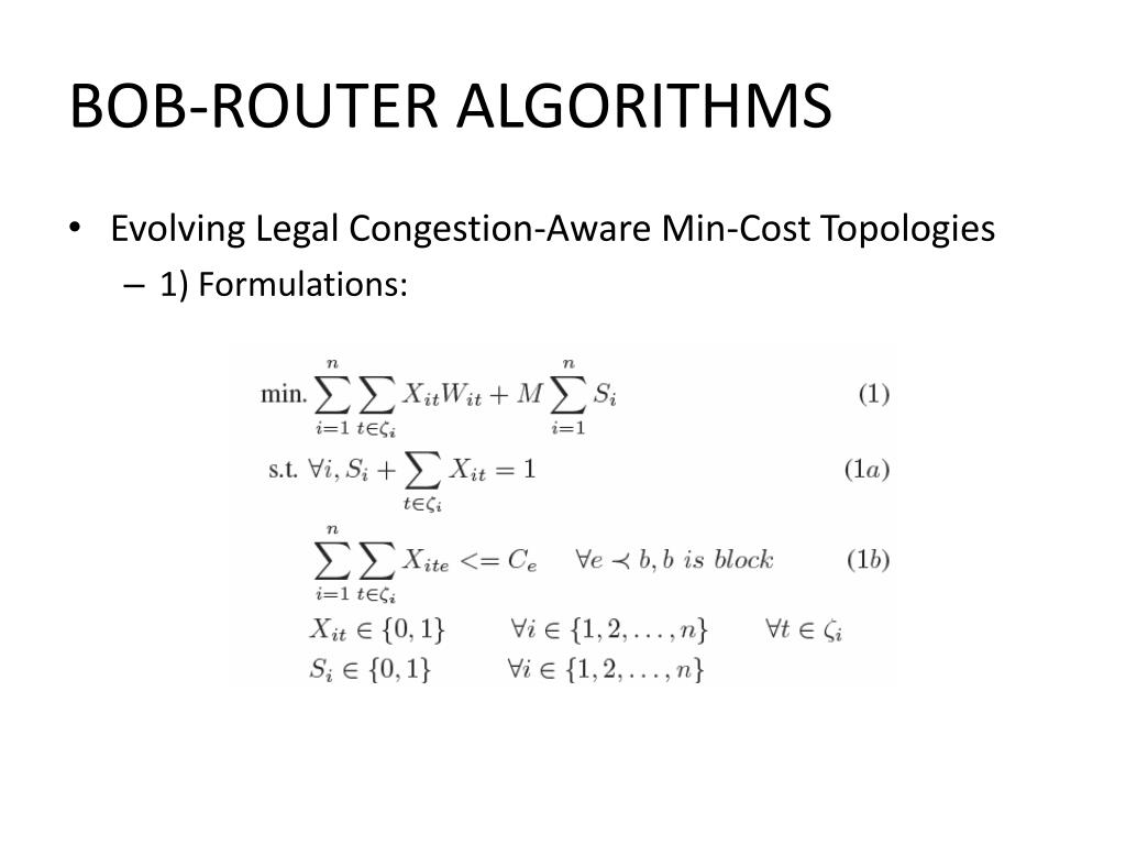 BOB-ROUTER ALGORITHMS • Evolving Legal Congestion-Aware Min-Cost Topologies • 1) Formulations: