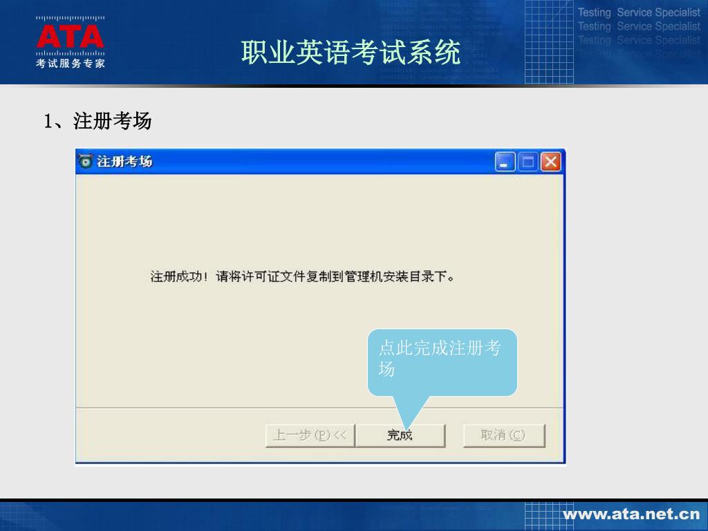 点此完成注册考场 职业英语考试系统 1、注册考场