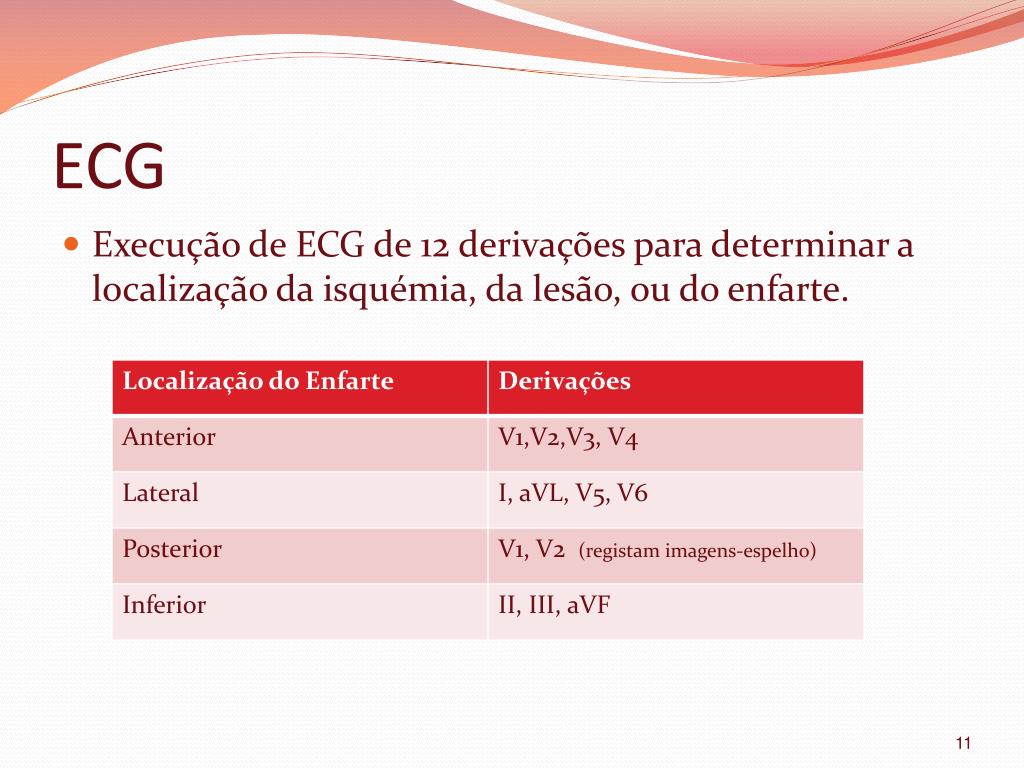 ECG • Execução de ECG de 12 derivações para determinar a localização da isquémia, da lesão, ou do enfarte.