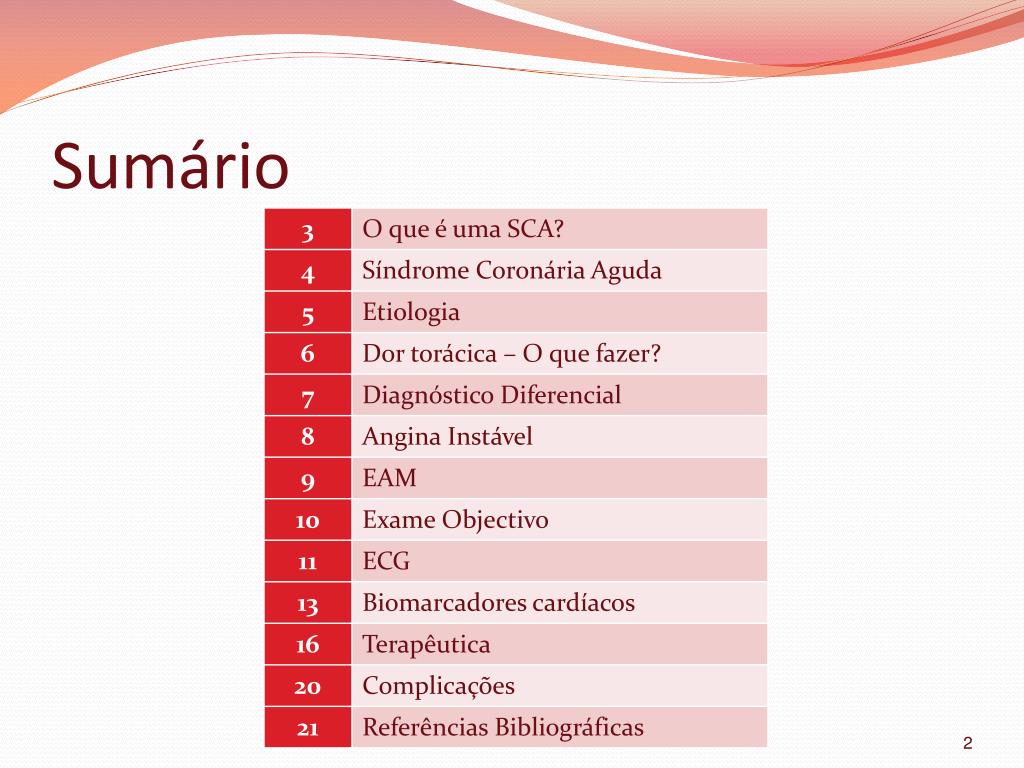 O que é uma SCA? • Conjunto de sintomas clínicos compatíveis com isquémia aguda do miocárdio. Manifesta-se como uma dor torácica devido a um fornecimento inadequado de sangue ao músculo cardíaco resultante de uma doença arterial coronária. American Heart Association • A gravidade da SCA é determinada pela quantidade de miocárdio atingido.