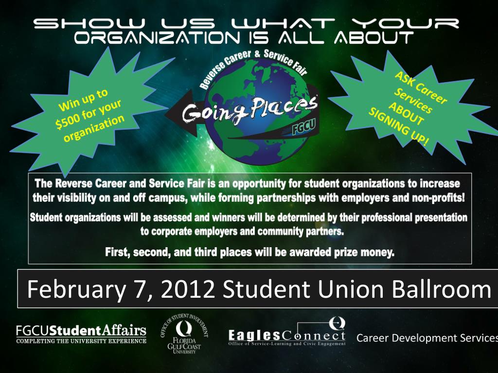 ASK Career Services ABOUT SIGNING UP! Win up to $500 for your organization February 7, 2012 Student Union Ballroom