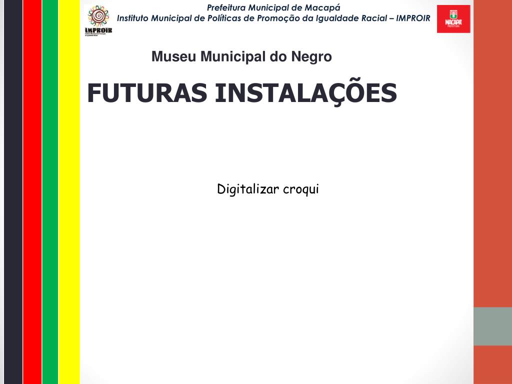 Prefeitura Municipal de Macapá Instituto Municipal de Políticas de Promoção da Igualdade Racial – IMPROIR Museu Municipal do Negro FUTURAS INSTALAÇÕES Digitalizar croqui