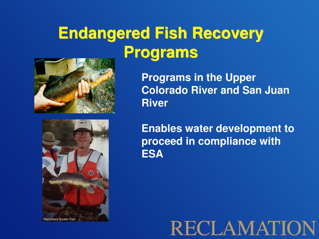Endangered Fish Recovery Programs Programs in the Upper Colorado River and San Juan River Enables water development to proceed in compliance with ESA