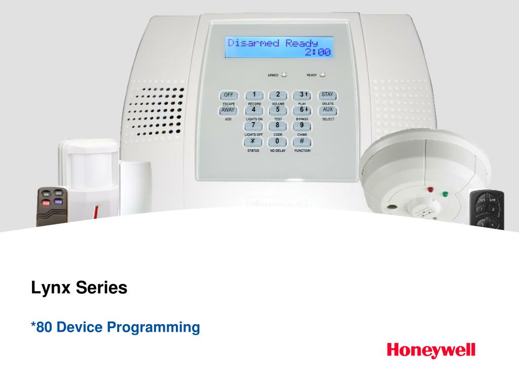 Lynx Series Lynx Plus LynxR-2 LynxR-EN LynxR-i LynxR-iSIA. Agenda. Panel Features Connecting an AlarmNet Communicator Programming Locations *56 Enhanced Zone Programming *80 Device Programming *81 Zone List Programming. Features. AlarmNet Communicator Compatible *