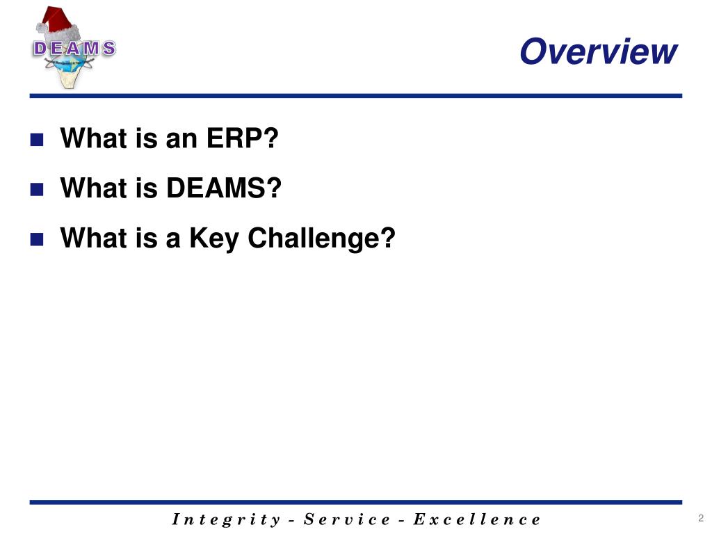 Overview • What is an ERP? • What is DEAMS? • What is a Key Challenge?
