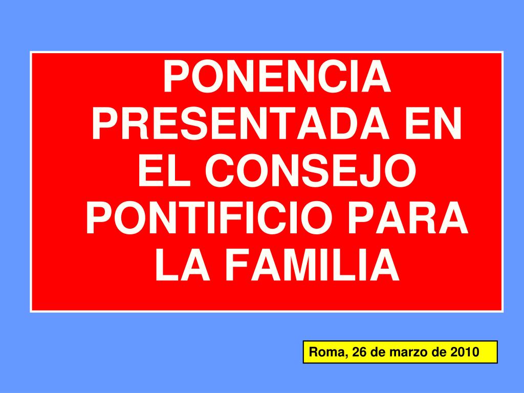PONENCIA PRESENTADA EN EL CONSEJO PONTIFICIO PARA LA FAMILIA Roma, 26 de marzo de 2010