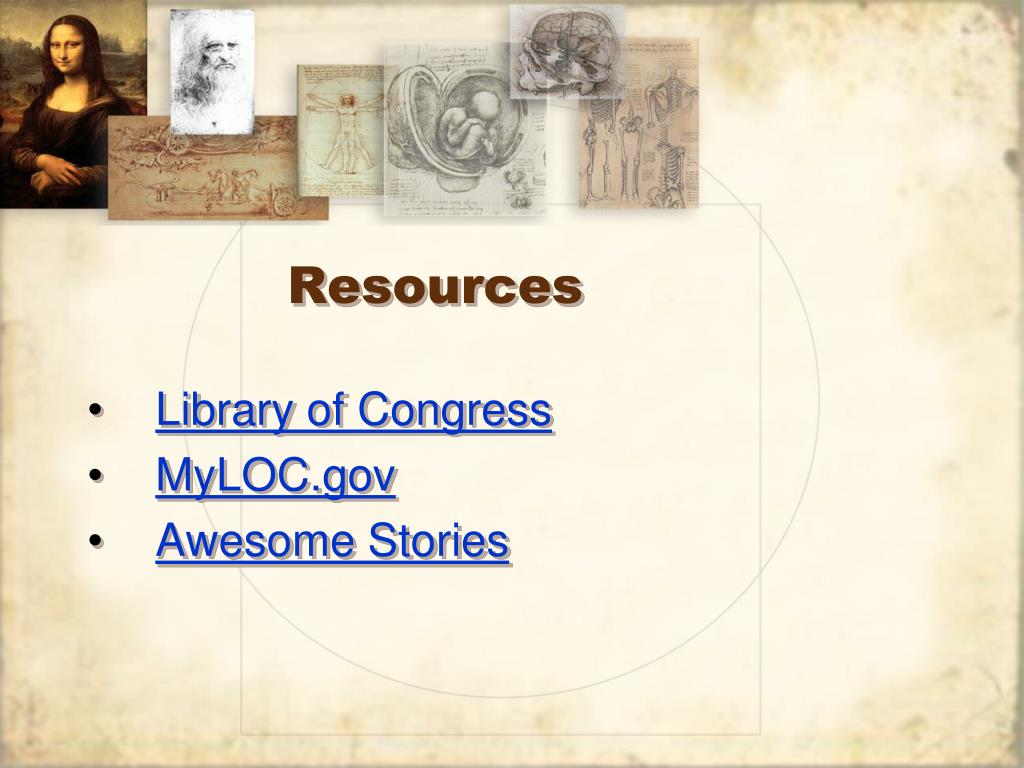 Resources • Library of Congress • MyLOC.gov • Awesome Stories