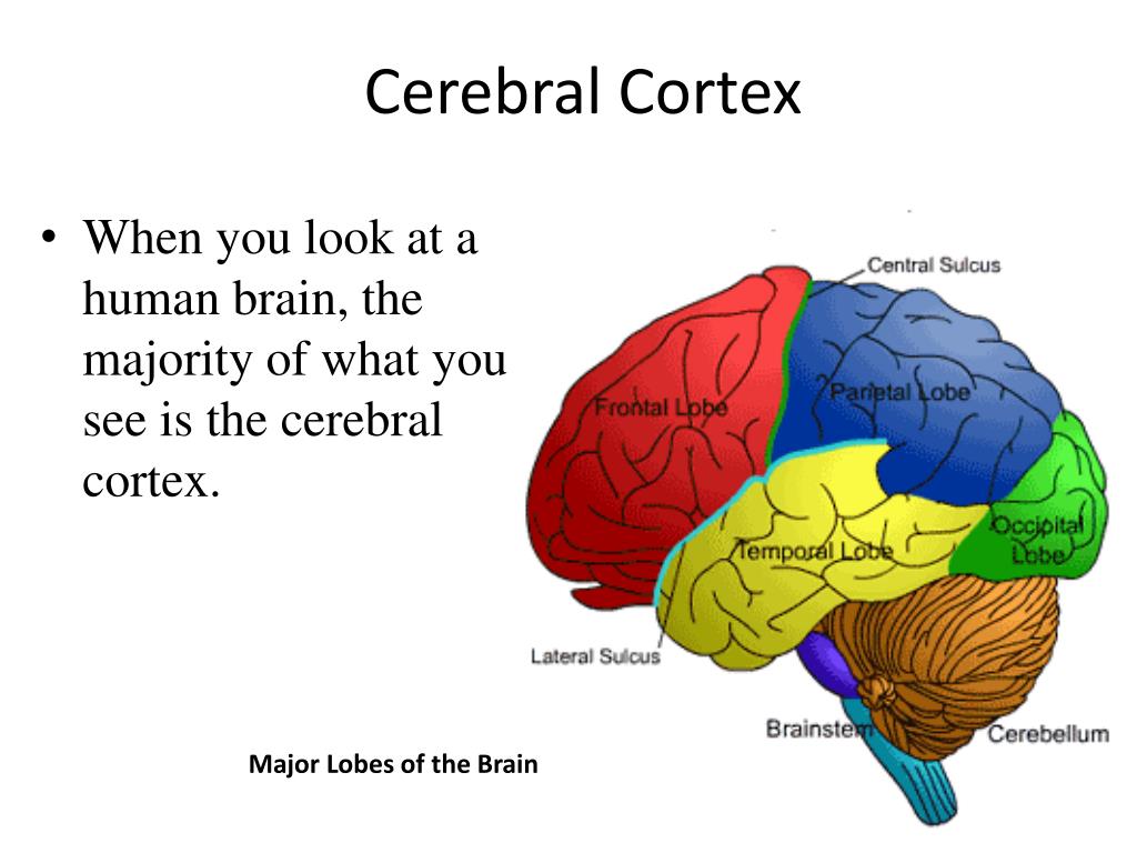 Cerebral Cortex Major Lobes of the Brain When you look at a human brain, the majority of what you see is the cerebral cortex.