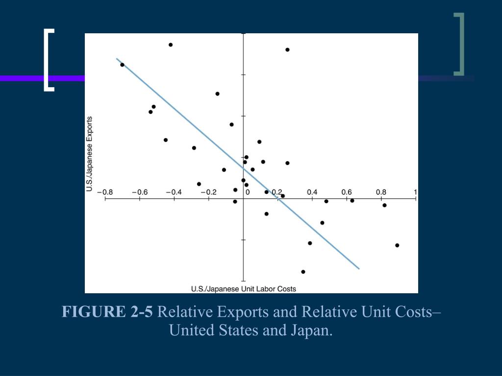 FIGURE 2-5 Relative Exports and Relative Unit Costs– United States and Japan.