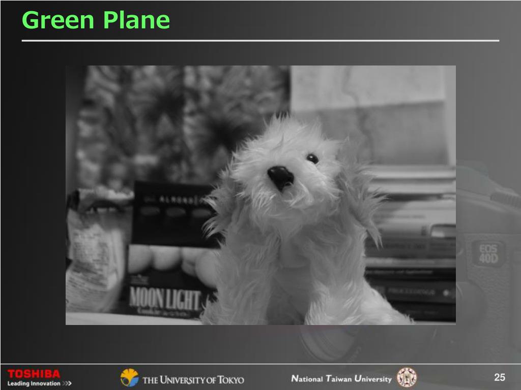 Depth Estimation • Our camera captures 3 views in the RGB planes • Stereo reconstruction problem Red plane Green plane Blue plane