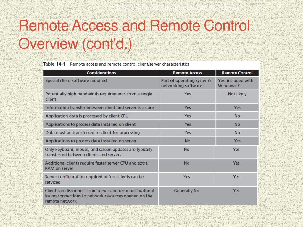 MCTS Guide to Microsoft Windows 7 Remote Access and Remote Control Overview (cont'd.)