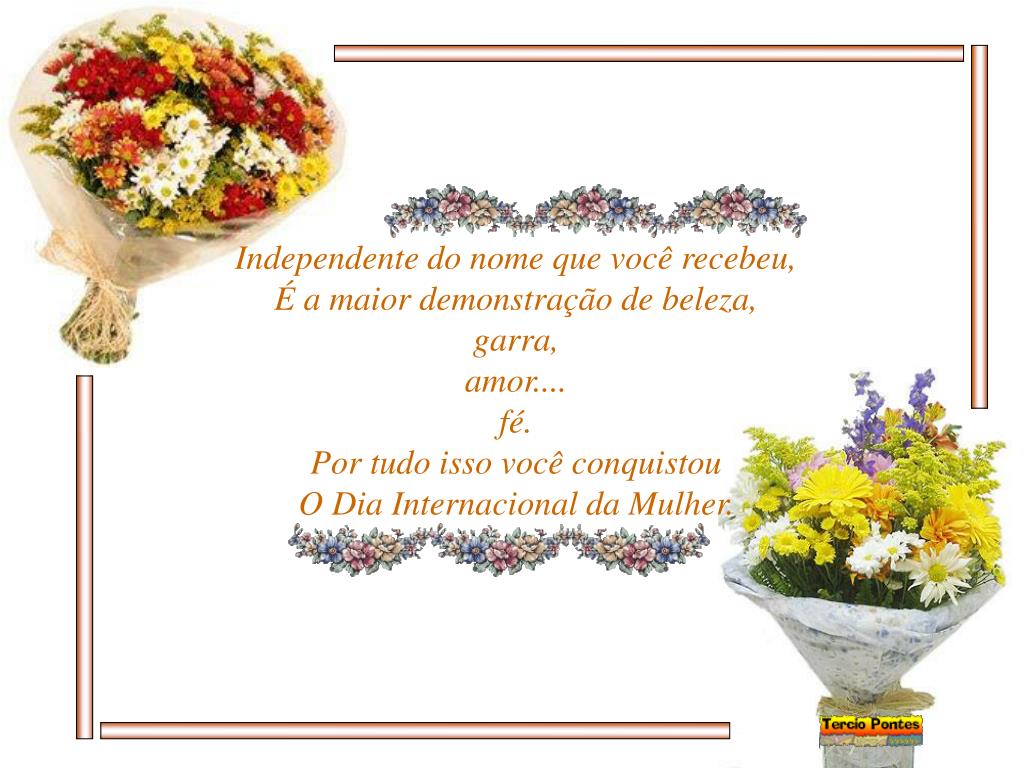 Independente do nome que você recebeu, É a maior demonstração de beleza, garra, amor.... fé. Por tudo isso você conquistou O Dia Internacional da Mulher.
