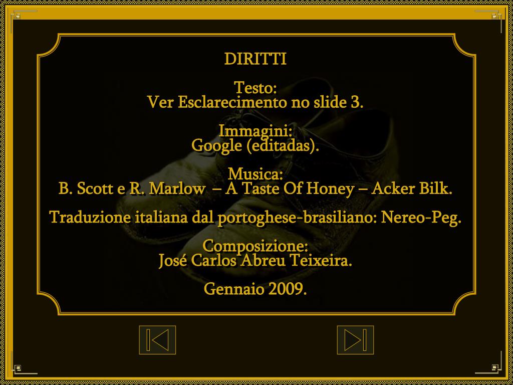 DIRITTI Testo: Ver Esclarecimento no slide 3. Immagini: Google (editadas). Musica: B. Scott e R. Marlow– A Taste Of Honey – Acker Bilk. Traduzione italiana dal portoghese-brasiliano: Nereo-Peg. Composizione: José Carlos Abreu Teixeira. Gennaio 2009.