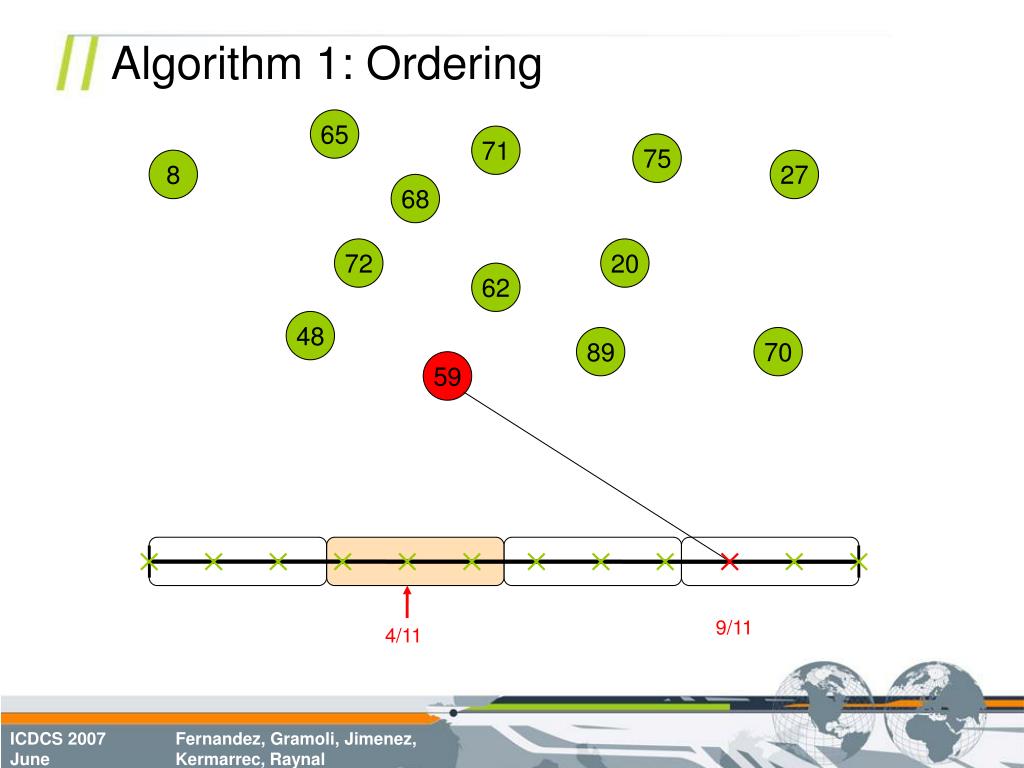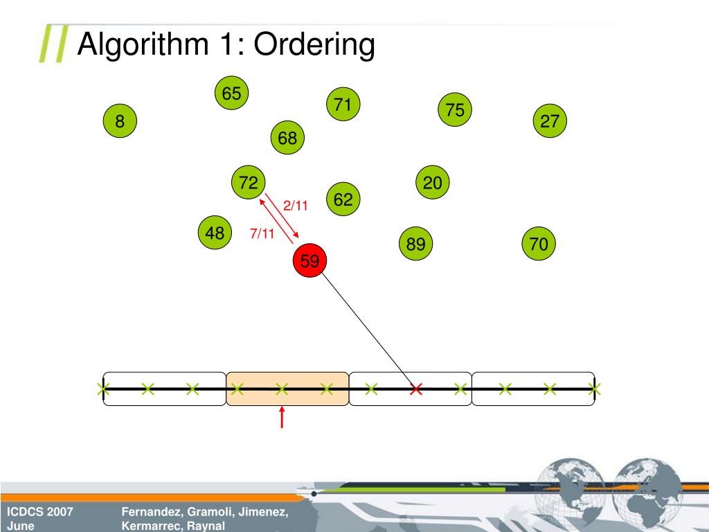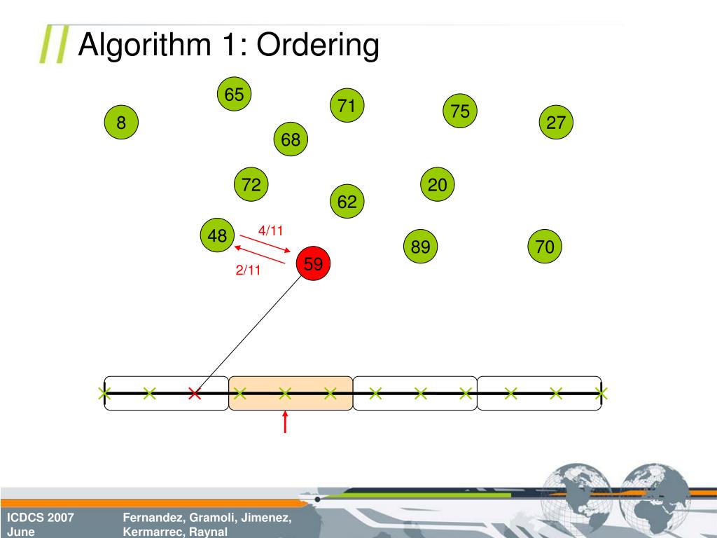 Fernandez, Gramoli, Jimenez, Kermarrec, Raynal Algorithm 1: Ordering 65 71 75 8 27 68 72 20 62 48 89 70 59 9/11 4/11