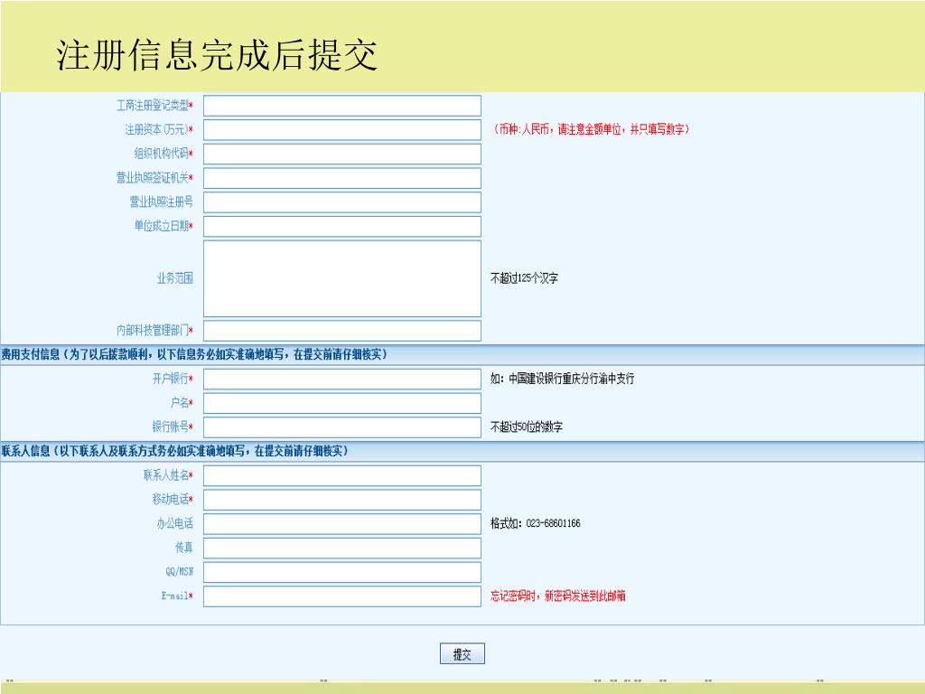 在线打印单位注册信息表 单位注册完毕后,系统会自动跳转到打印页面。