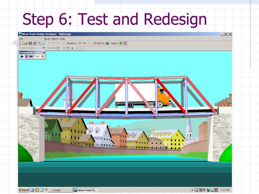 Step 5: Test it Well • Test and optimize design against constraints and customer expectations. • Create a test plan showing how to test • Test in the conditions of use • Good test plan shows what test, expected results how to test, and what analyses will be. It relates to specification requirements • e.g. test plan for light bulb (activity)
