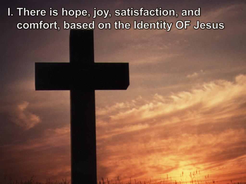 I. There is hope, joy, satisfaction, and comfort, based on the Identity OF Jesus