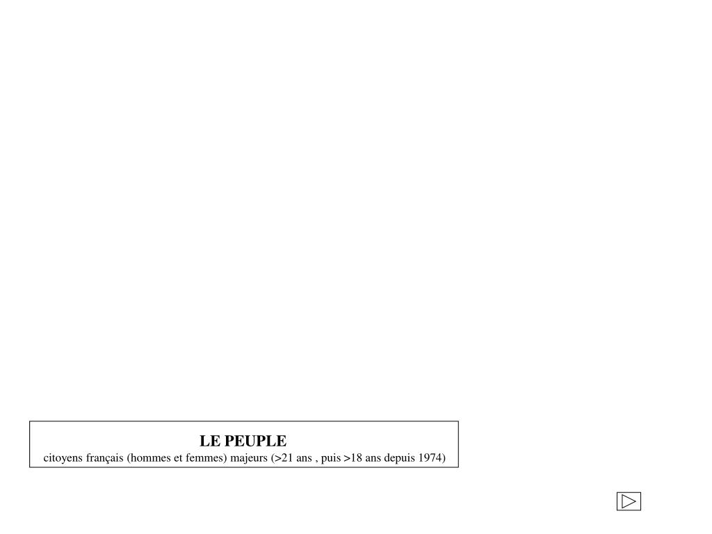 LE PRESIDENT DE LA REPUBLIQUE LE PEUPLE citoyens français (hommes et femmes) majeurs (>21 ans , puis >18 ans depuis 1974)