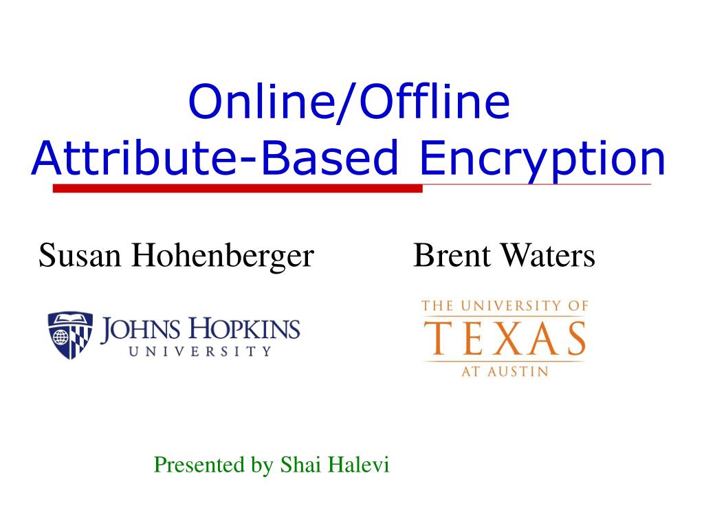 Online/Offline Attribute-Based Encryption Susan Hohenberger Brent Waters Presented by Shai Halevi