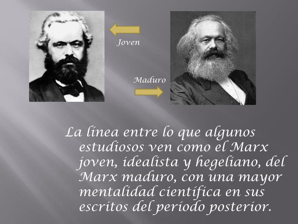 Joven La línea entre lo que algunos estudiosos ven como el Marx joven, idealista y hegeliano, del Marx maduro, con una mayor mentalidad científica en sus escritos del período posterior. Maduro