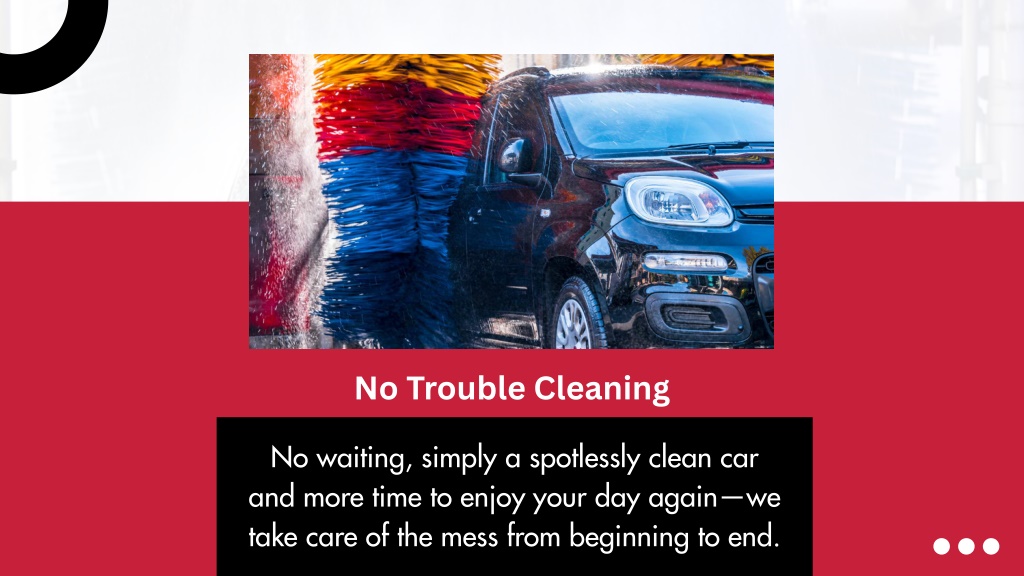 6. No Trouble Cleaning No waiting, simply a spotlessly clean car and more time to enjoy your day again—we take care of the mess from beginning to end.