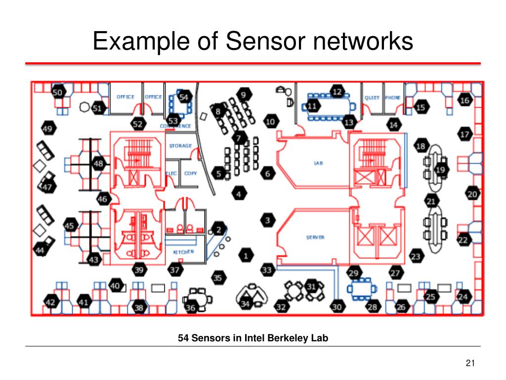 Example of Sensor networks 54 Sensors in Intel Berkeley Lab