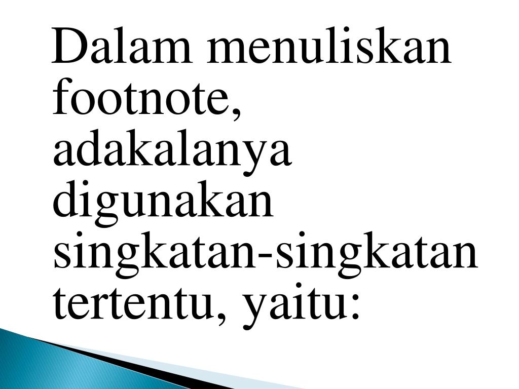 Dalammenuliskan footnote, adakalanyadigunakansingkatan-singkatantertentu, yaitu: