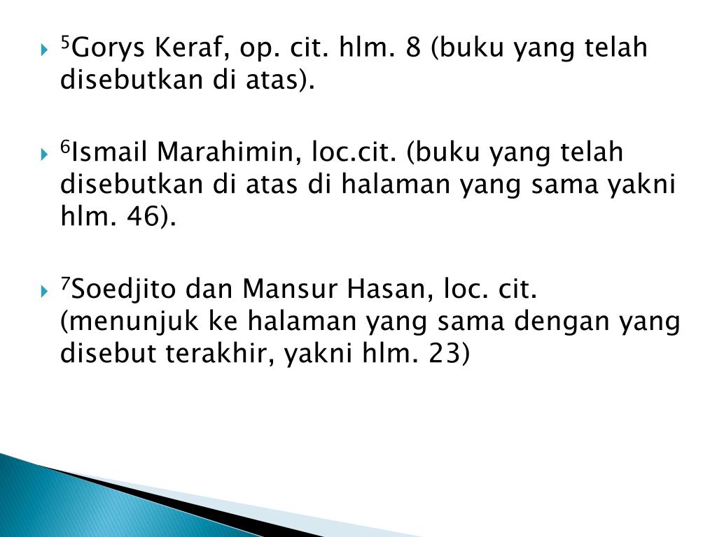 5Gorys Keraf, op. cit. hlm. 8 (buku yang telahdisebutkandiatas). • 6Ismail Marahimin, loc.cit. (buku yang telahdisebutkandiatasdihalaman yang samayaknihlm. 46). • 7Soedjito dan Mansur Hasan, loc. cit. (menunjukkehalaman yang samadengan yang disebutterakhir, yaknihlm. 23)