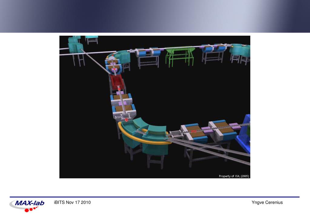 MAX IV – Tidslinje II 2009 2010 2010 – 2015 2015 Våren 2011 Byggstart 2012 Linac 2013 Ringbyggnaderna färdiga 2014 Första strålen En startversion av MAX IV i drift Stadsplan för MAX IV-området Upphandling av fastighetens byggherre Bygghandlingar Beställning av utrustning 22 Nov Första spadtaget (våren) 26 IBITS Nov 17 2010 Yngve Cerenius