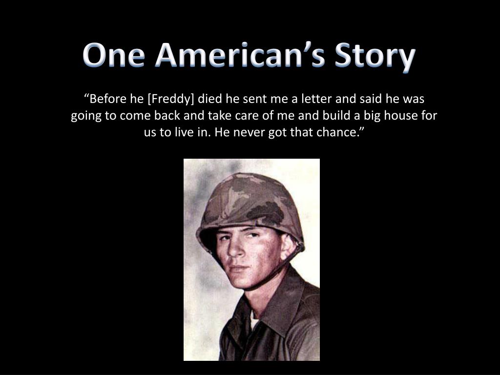 One American’s Story “Before he [Freddy] died he sent me a letter and said he was going to come back and take care of me and build a big house for us to live in. He never got that chance.”