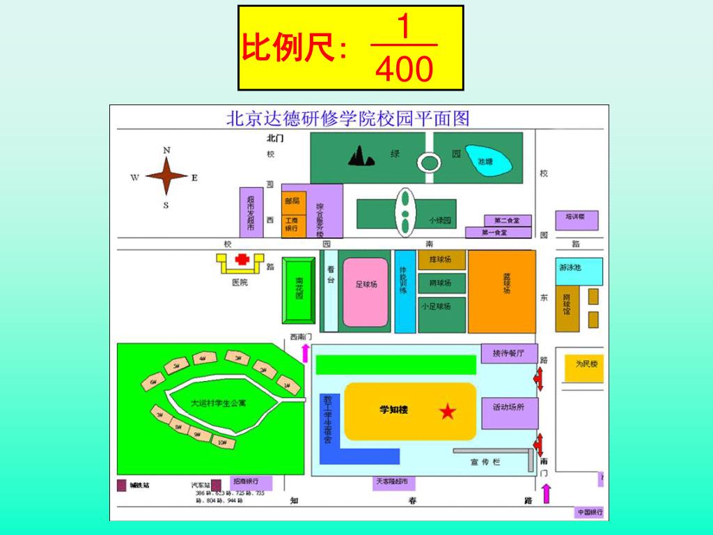 1 400 比例尺: 比例尺:1:200 比例尺:1:100 数值比例尺的特点: 1.是一个比; 2.图上距离和实际距离 的单位是统一的; 比例尺:1:200000 比例尺:1:1000000 3.比例尺的前项一般为1。 比例尺:1:4500000
