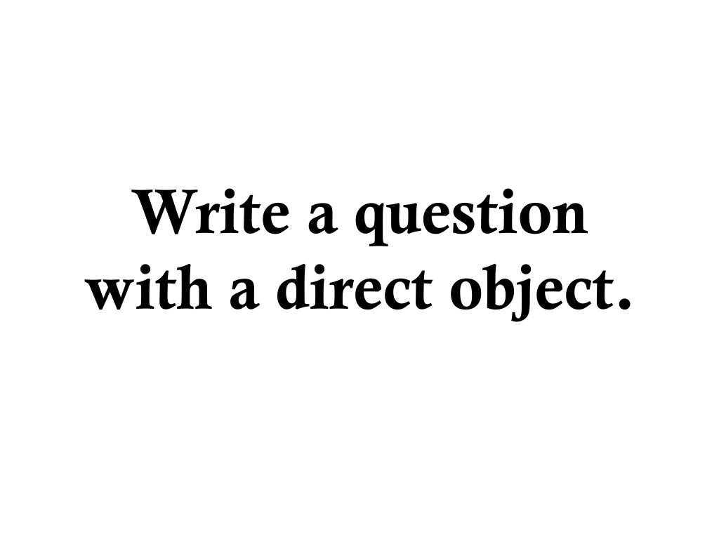 Direct Objects in Questions • A direct object in a question will sometimes be before the verb. • Just re-write the words into a sentence and ask the questions (what?, who?) • What does Becca Teacher teach? • Becca Teacher does teach what • Teach what? ___________